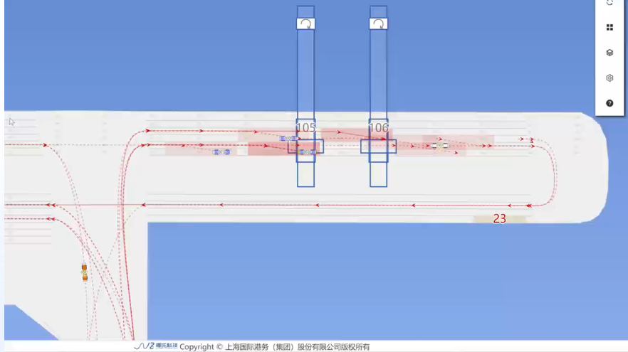 基于先进算法的全局动态调度与智能决策体系,Neo-TOS能够根据现场工况对90多台AIV的路径进行实时调度与路径规划,并与数十台轨道吊桥吊完成资源匹配与任务衔接,确保了码头各个环节的高效周转,避免现场拥堵。